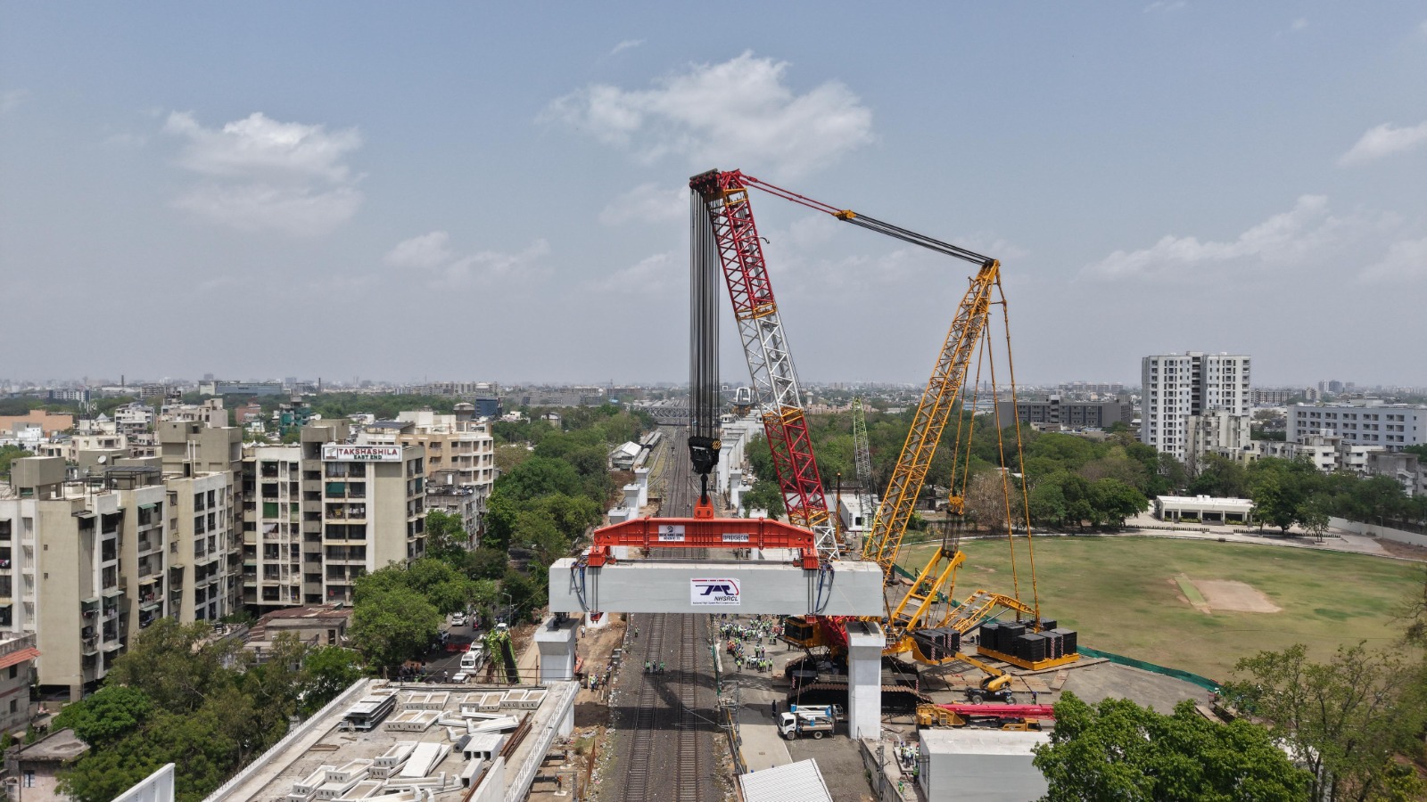 In a one-of-its-kind operation, one of the heaviest precast prestressed portal beams (girders), weighing approximately 1,360 metric tonnes, has been launched over the Ahmedabad–Vadodara railway line in Maninagar for the Mumbai–Ahmedabad Bullet Train project, the National High Speed Rail Corporation Limited (NHSRCL) said on Wednesday. ........