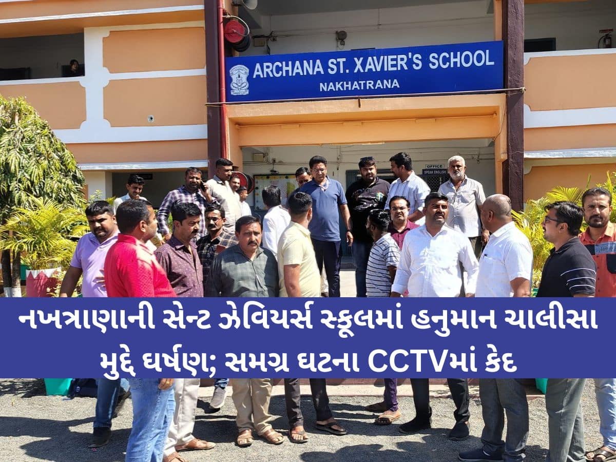 કચ્છના નખત્રાણામાં આવેલી અર્ચના સેન્ટ ઝેવિયર્સ સ્કૂલ ફરી એકવાર વિવાદના વંટોળમાં આવી છે. આ વખતે મામલો ધાર્મિક લાગણી દુભાવવાનો છે. શાળાની એક શિક્ષિકાએ વિદ્યાર્થિનીના હાથમાંથી હનુમાન ચાલીસાની પુસ્તિકા ઝૂંટવીને મેદાનમાં ફેંકી દેતા ભારે હંગામો મચી ગયો છે. ઘટનાના CCTV ફૂટેજ સામે આવ્યા બાદ હિન્દુ સંગઠનોએ શાળા પર હલ્લો બોલાવ્યો હતો. જોઈએ આ ખાસ અહેવાલ. .......